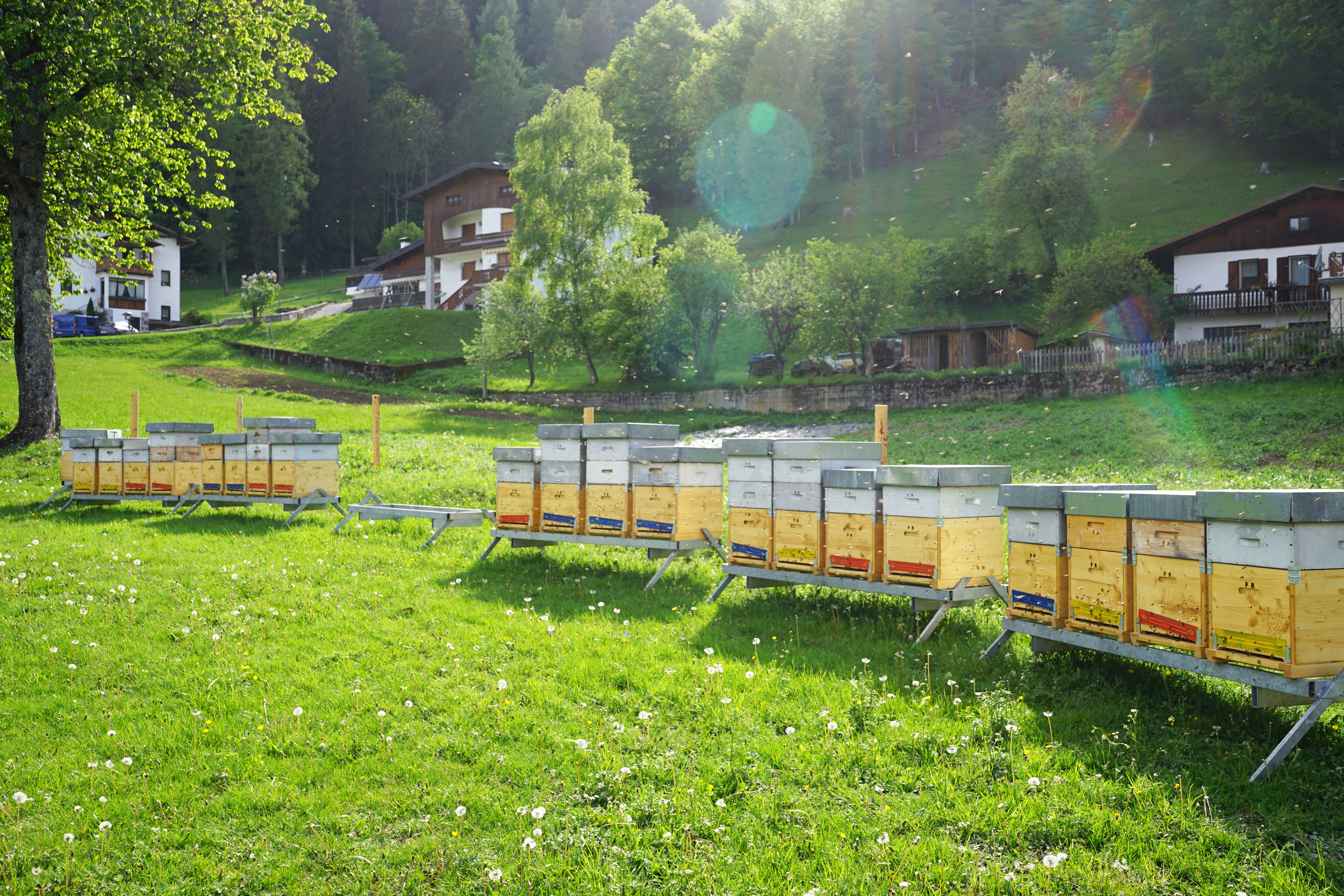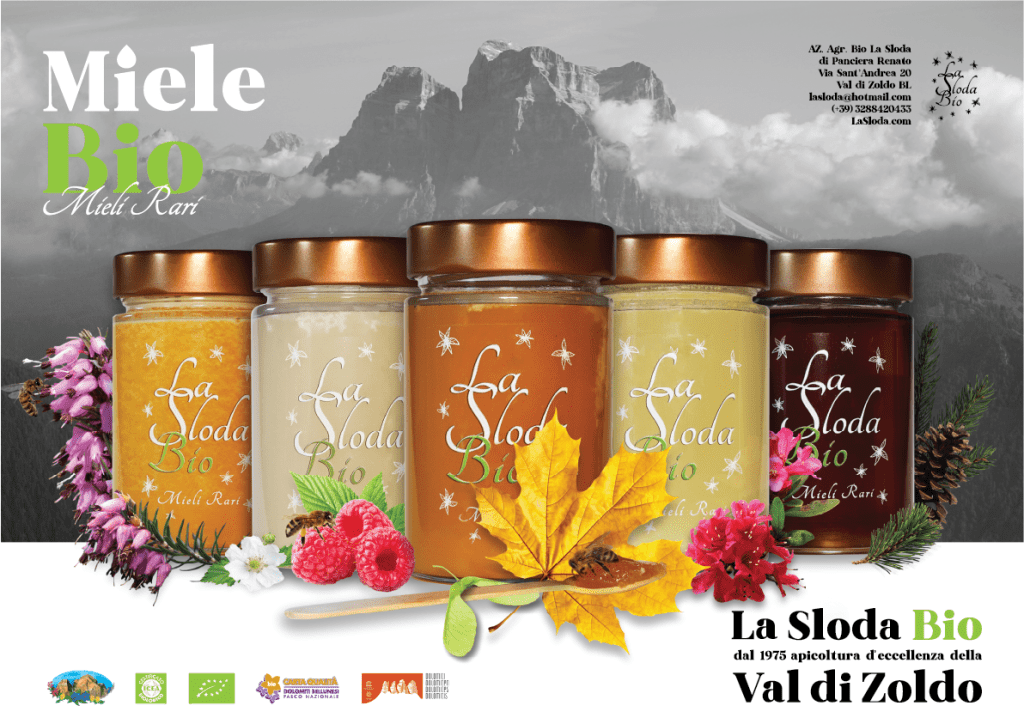 Nel mio paese negli anni ’20 del secolo scorso un vecchio paesano anarchico aveva introdotto l’apicoltura razionale; mio nonno era un suo allievo e così, tramite mio padre, mi giunsero sette alveari. L’ occasione per il grande passo fu la nascita del mio primo figlio Federico, nel 1984. Decisi di dedicarmi a lui e di occuparmi degli alveari che nel frattempo erano diventati 70. Abito nella valle del gelato; i miei conterranei mostrarono fin dall’inizio di apprezzare la qualità del mio miele. Il disastro di Chernobyl, mi portò a riflettere e rafforzò la mia convinzione sulla bontà della scelta del biologico come metodo di produzione. Ho partecipato in quegli anni alla stesura del primo disciplinare in materia. Ad oggi conduco circa 300 alveari e produco 7-8 tipi di miele spostando con il camioncino gli alveari sulle fioriture di Acacia, Tarassaco, Melo e Castagno nella pedemontana veneta e friulana e in Val Belluna sui fiori di Tarassaco e successivamente di Tiglio. Sposto poi gli alveari in Val di Zoldo per i mieli di Erica Carnea (sloda), di Millefiori di alta montagna, Rododendro e per le melate di Abete rosso e di Abete bianco. Alla fine degli anni ‘90, dopo la nascita del mio secondo figlio Matteo, ho ristrutturato parte della casa con i criteri della bioedilizia per ricavarne delle camere con bagno ed insieme alla mia famiglia gestisco l’agriturismo “La Sloda”.